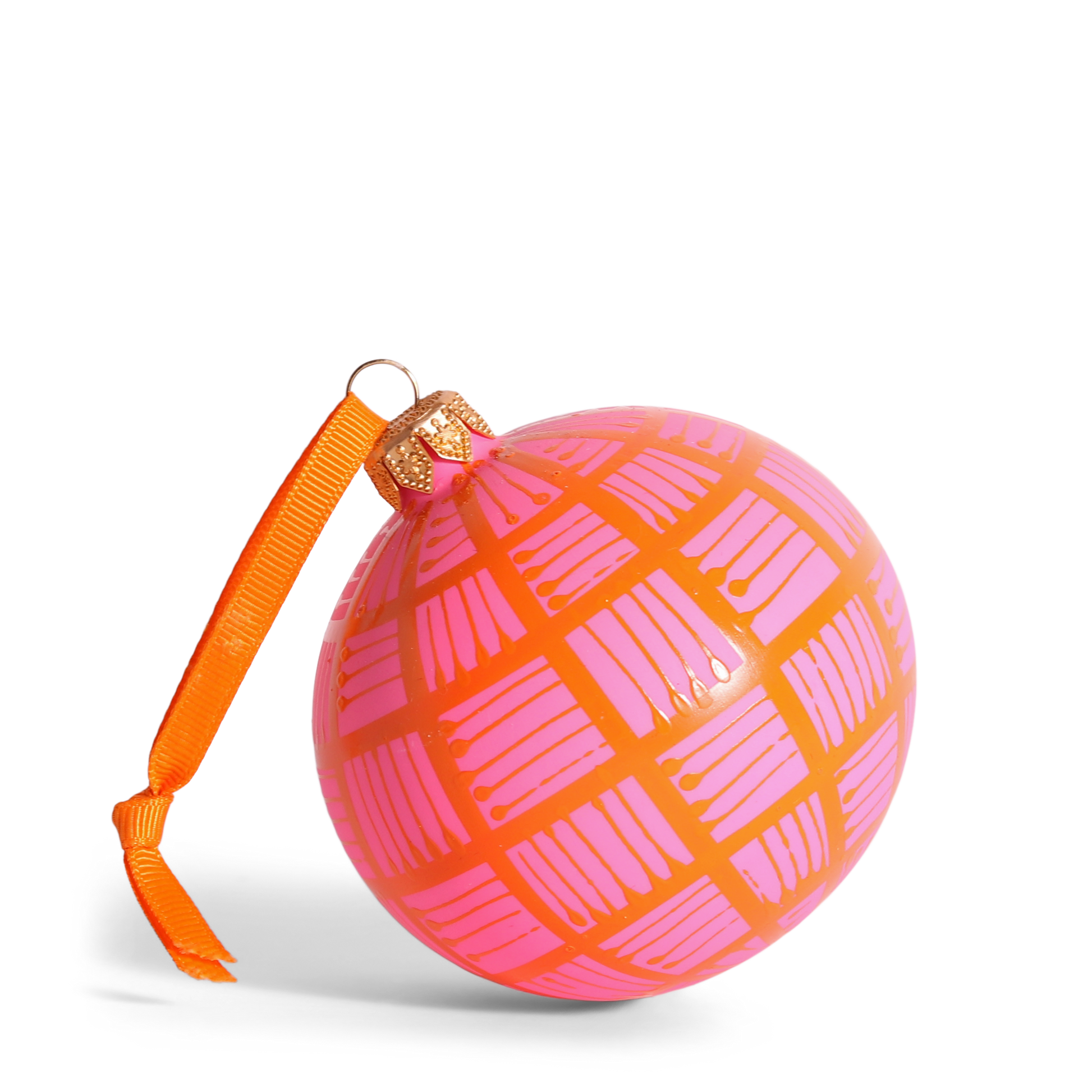 Lines Glass Christmas Bauble Orange on Pink, 8cm