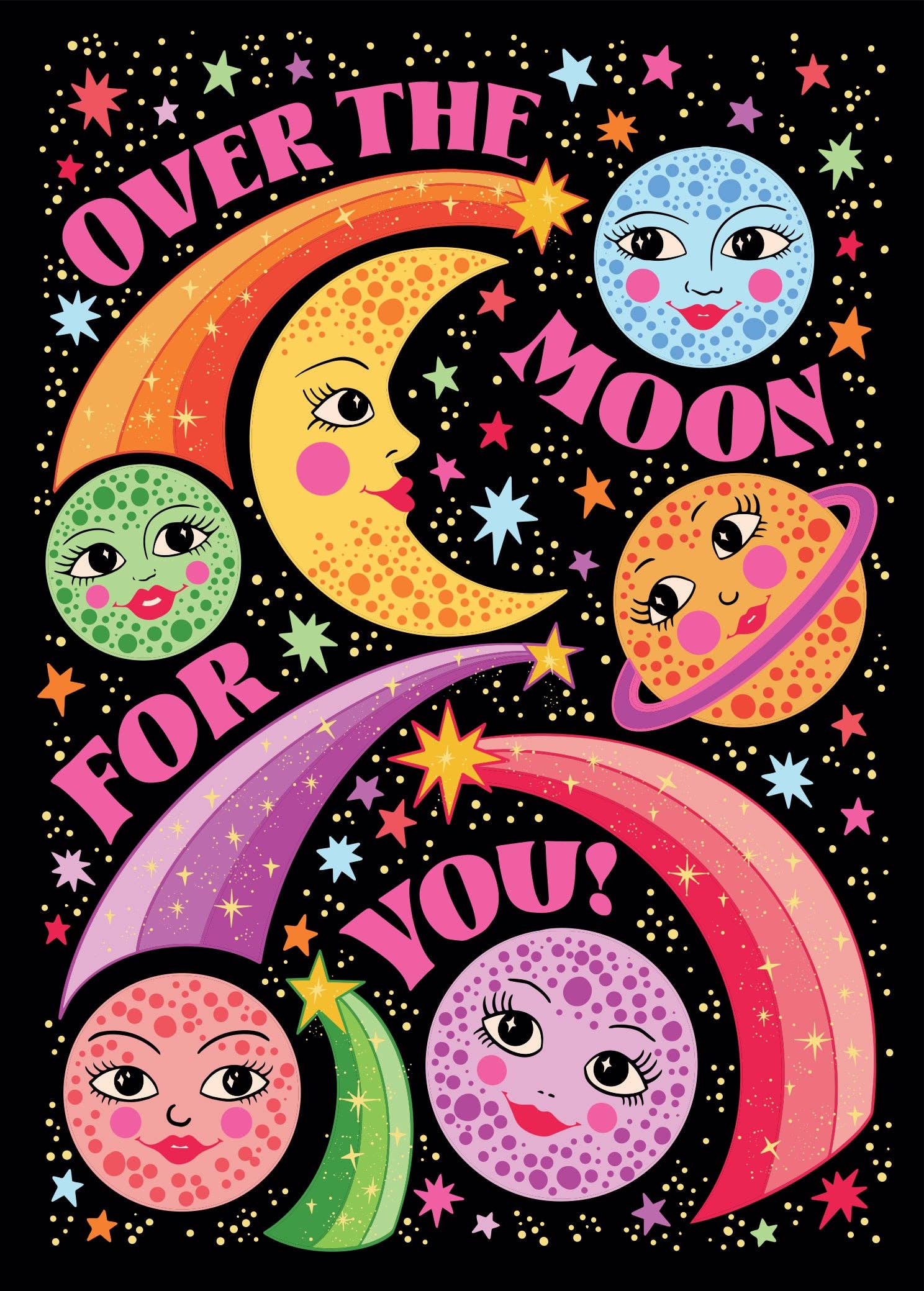 “Over The Moon” – Bold Cosmic Congratulations Card from Lost Plots