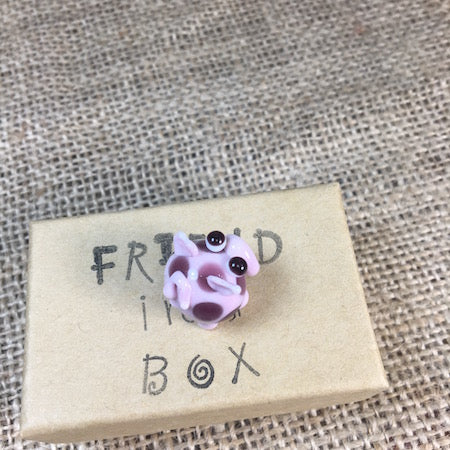 These tiny glass pet Pigs make lovely gifts for Children over the age of 4. As they are handmade they colours, shapes and expressions may vary slightly. Measuring approx 1.5 cm. Hand made in Bristol.
