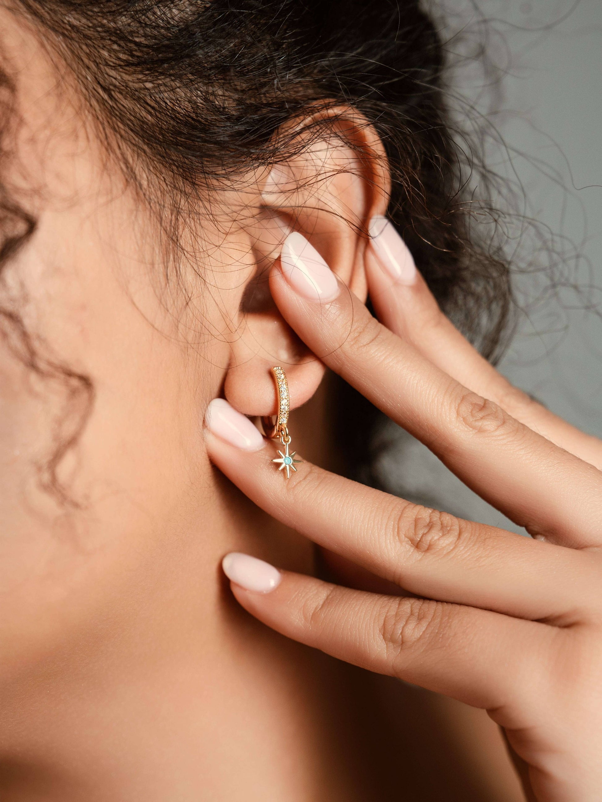 Tiny North Starburst Skye Blue CZ Huggie Hoop Earrings