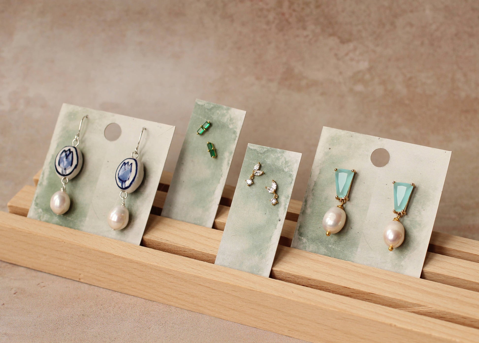 Our Leaf Earrings are available in two finishes: soft matte or a shiny glass appearance. The colour and level of detail on the earrings are exactly the same regardless of which you choose. We've included an image for a better idea.